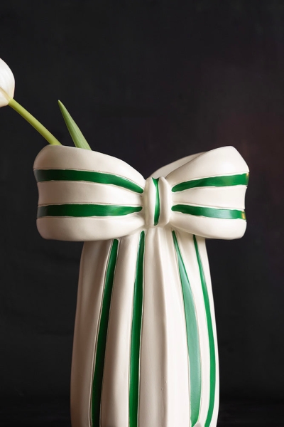 White & Green Beautiful Bow Bud Vase