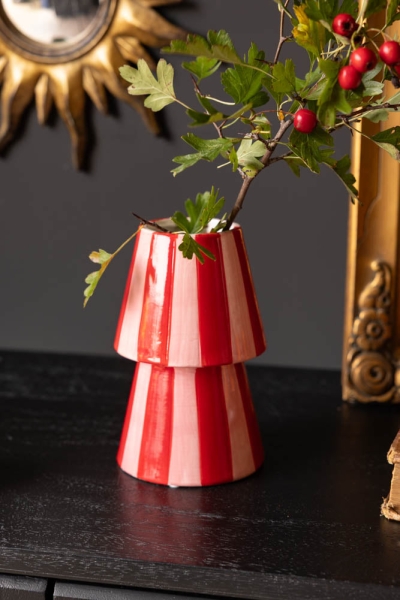 Red & Pink Stripe Flower Vase