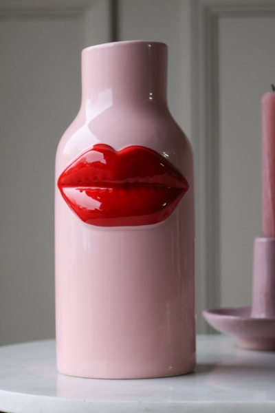 Pink Ceramic Vase With Luscious Red Lips