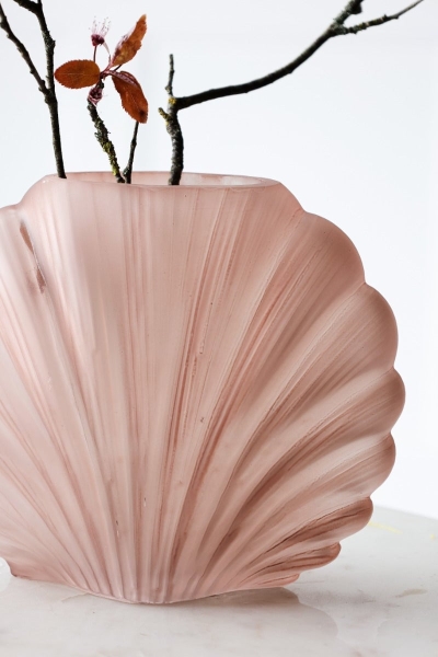 Blush Pink Frosted Glass Shell Vase